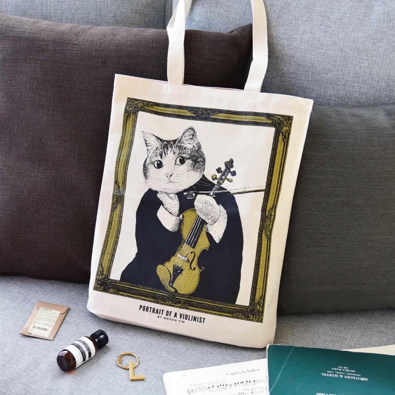 🐱 古典音樂貓帆布袋 — Portrait of a Violinist