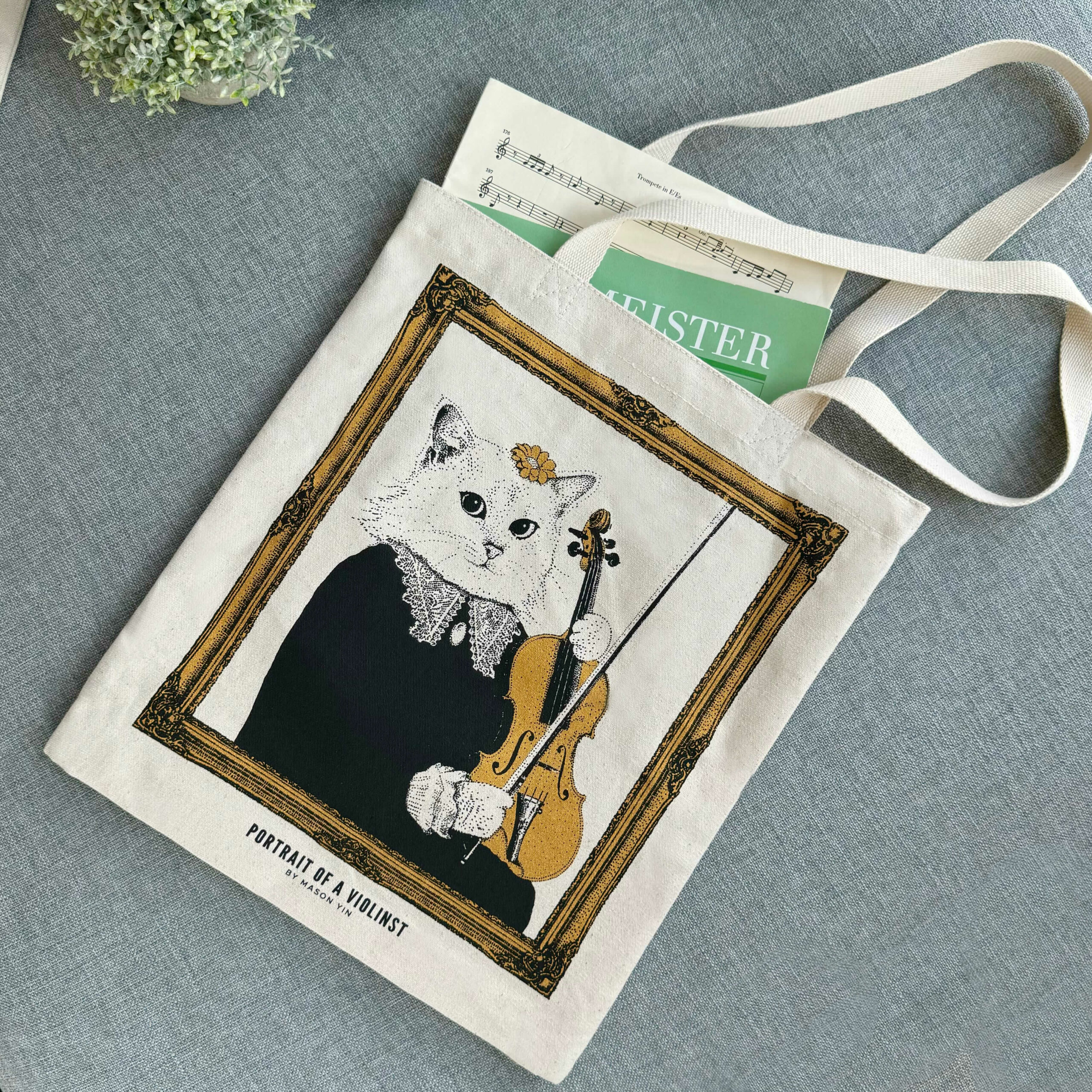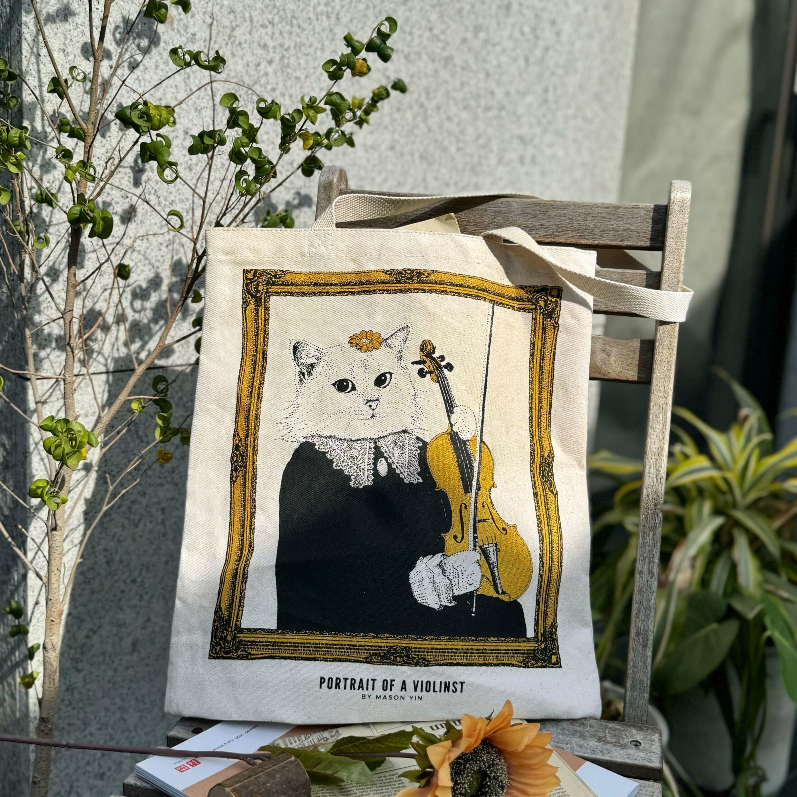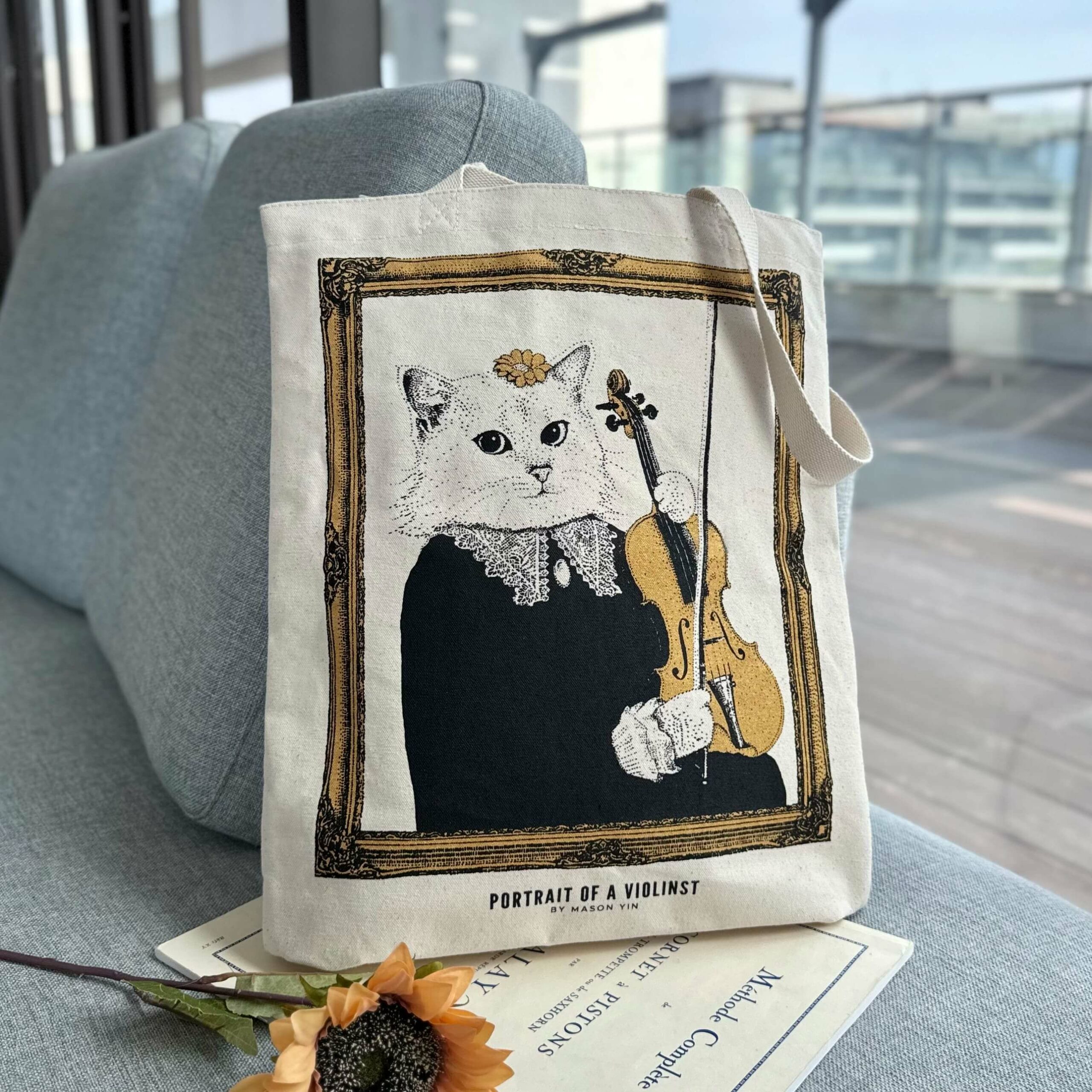 提起這只【小提琴】女版古典音樂貓帆布袋,