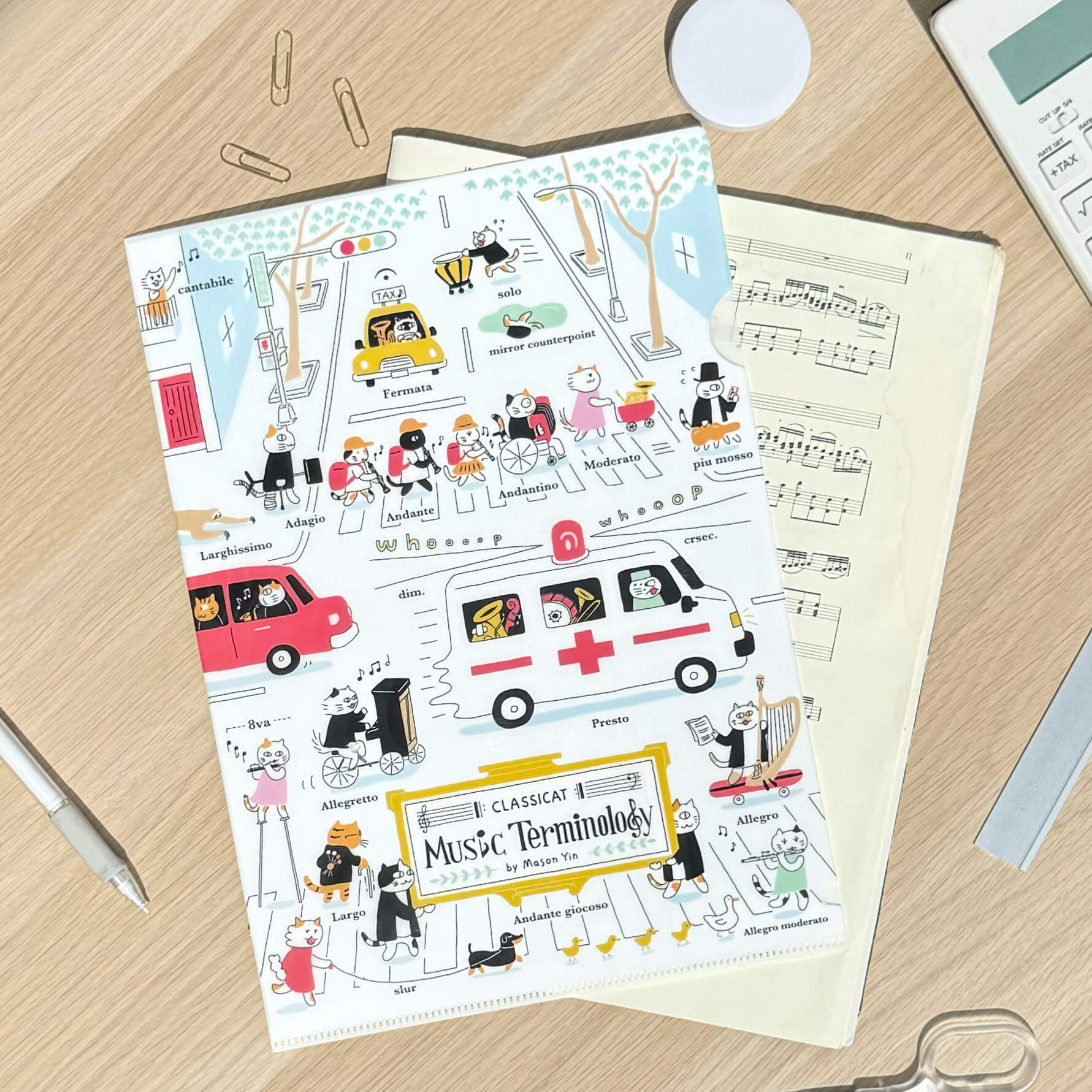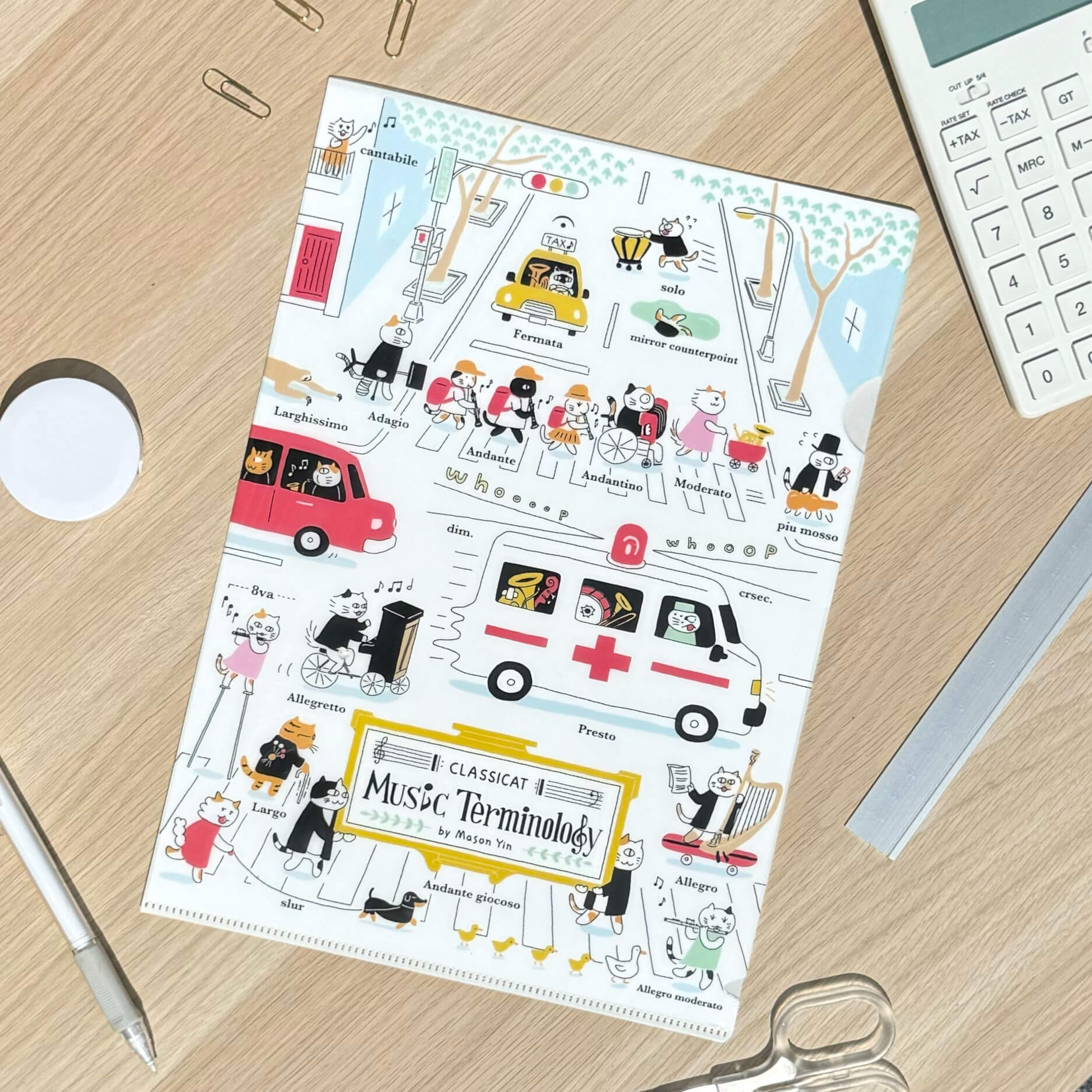 這款資料夾將艱澀難懂的樂理術語,透過設計師 莓森林Mason Yin 充滿想像力的插畫,以**「交通情境」**來生動詮釋: