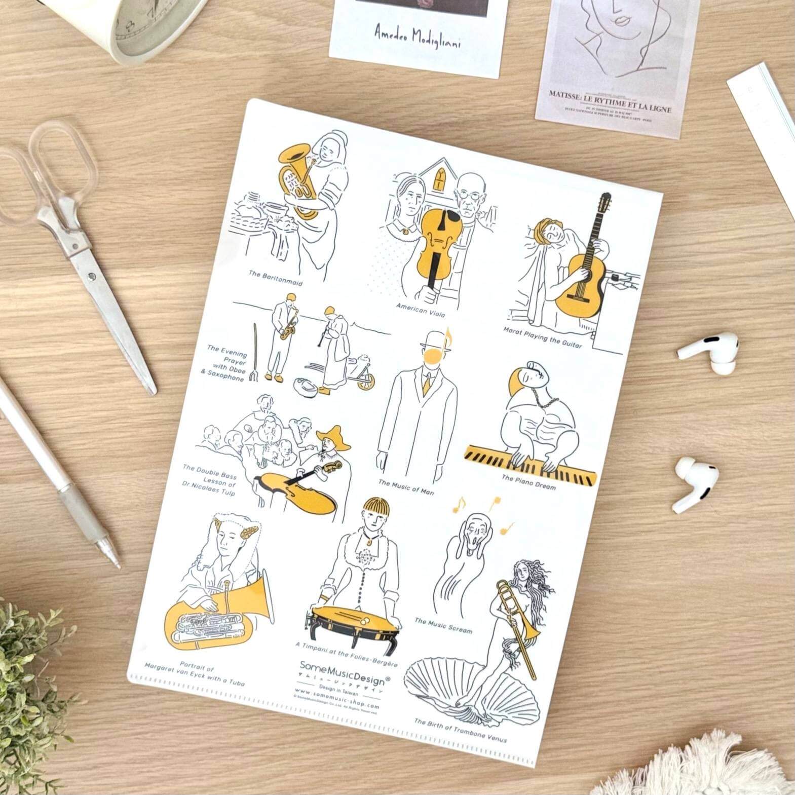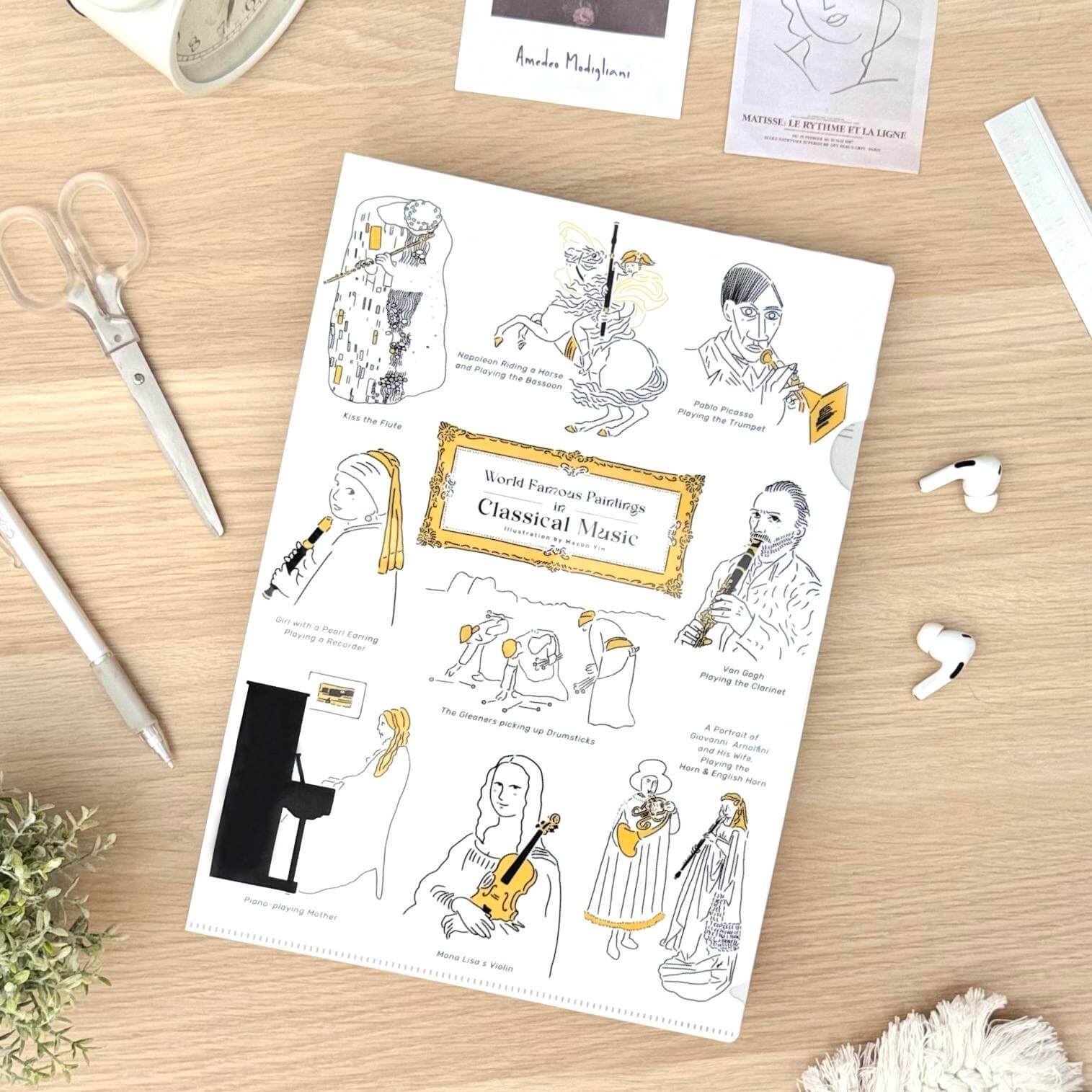 古典名畫不再只是靜態的藝術!這款資料夾將世界知名的繪畫作品和藝術家,與樂器進行幽默的結合,創造出充滿想像力的**「音樂名畫」**系列。